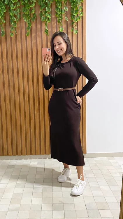 é uma peça única que cobre o corpo, refere-se ao comprimento do vestido, indica que o vestido possui mangas que se estendem por todo o braço.